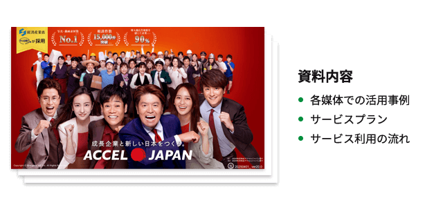 ACCEL JAPAN(アクセルジャパン)は、当プロジェクトが高額なフロント費用を負担することで、多くの企業が、タレントの肖像を初期費用0円かつ月々定額で利用できるモデルを実現。